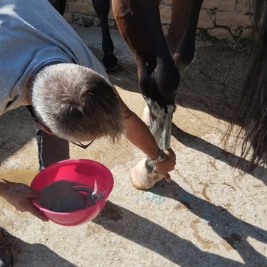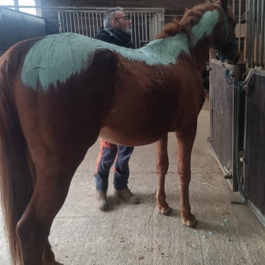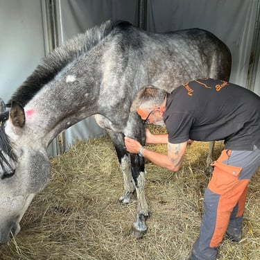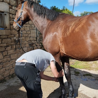 Les soins sont réalisés par Franck, thérapeute équin agréé par la FEI